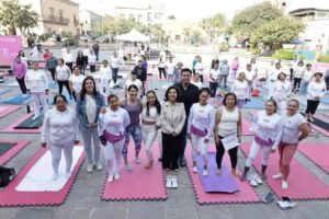 Con una gran participación se realizó la mañana de este jueves una clase masiva de yoga en la Plaza de Aranzazú, organizada por la Dirección de Deporte Municipal en coordinación con el DIF Municipal, como parte de las actividades conmemorativas por el Día Internacional de la Mujer.La sesión comenzó a