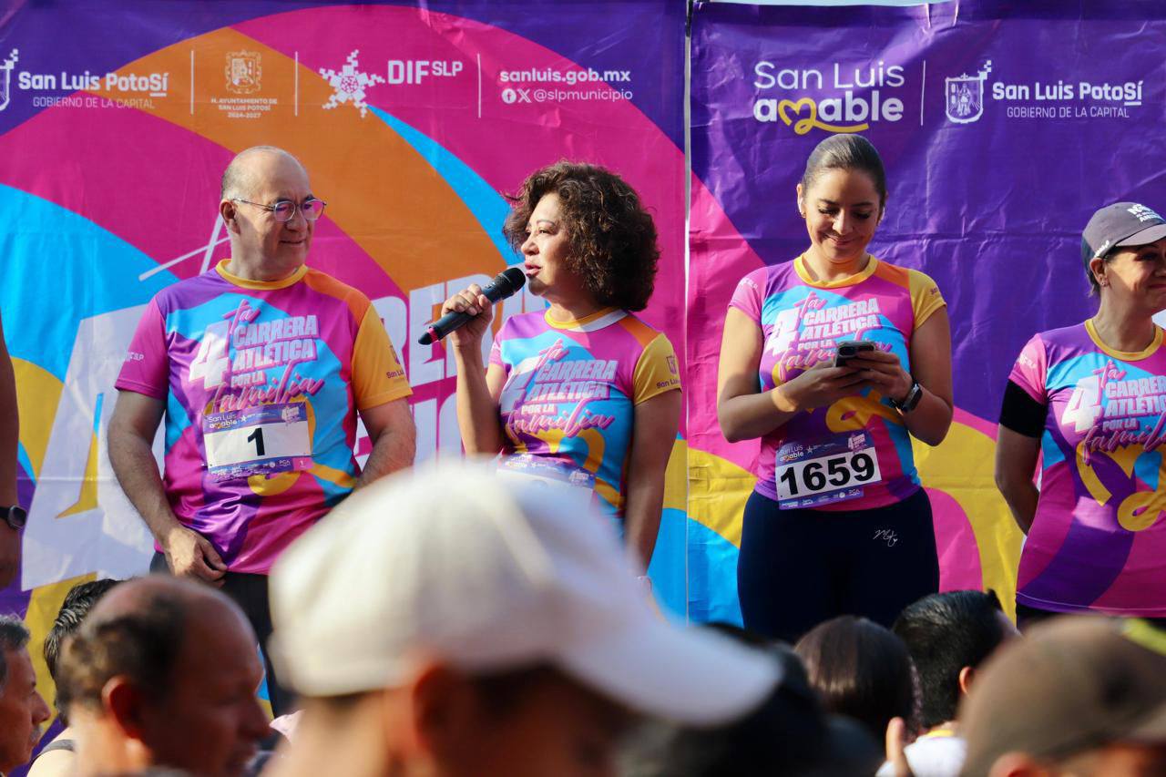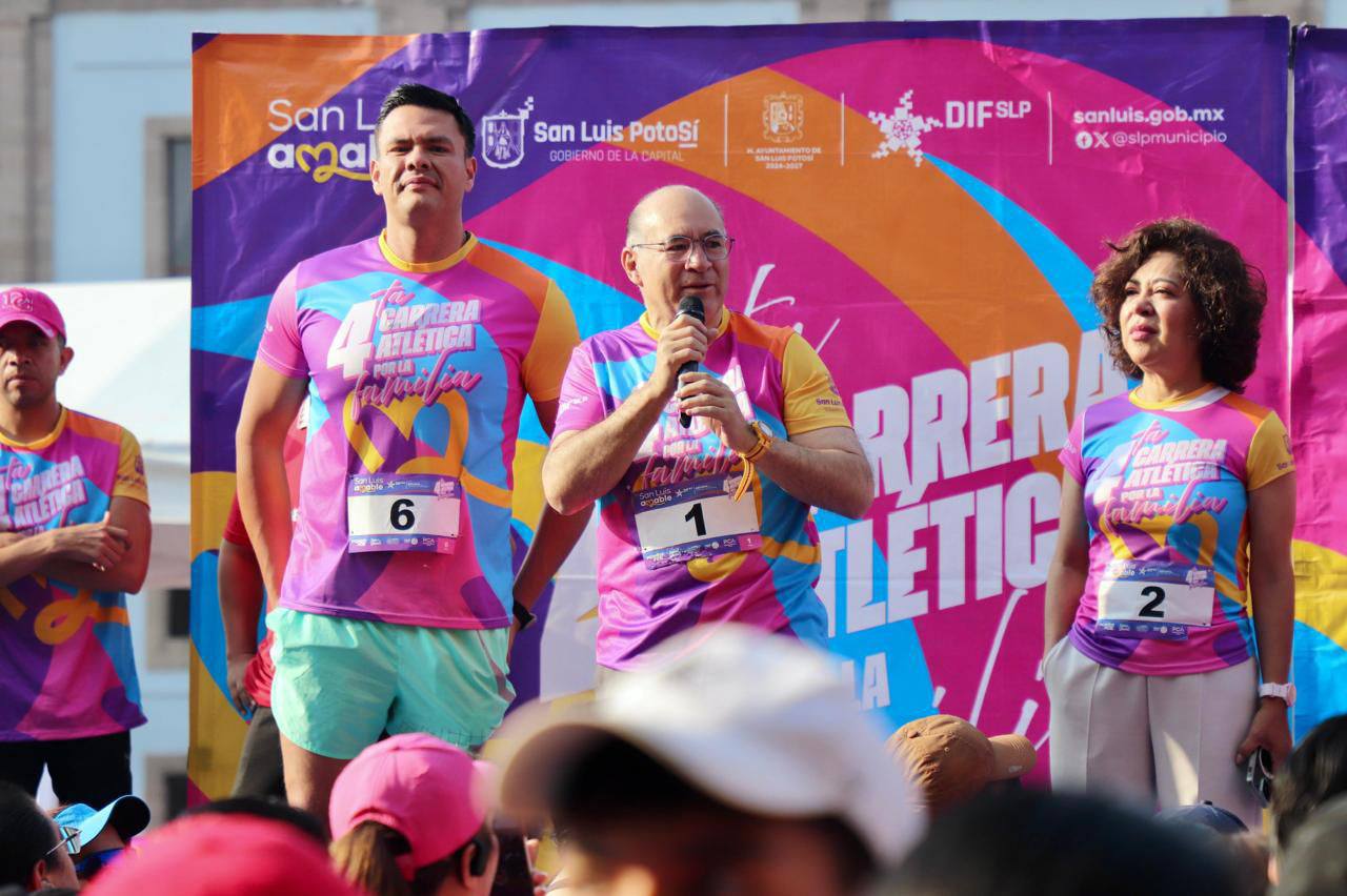 San Luis Potosí vivió una gran fiesta de unidad y salud con la 4ta Carrera por la Familia del DIF Municipal, celebrada este domingo en la Plaza de Fundadores, donde más de 2 mil personas participaron en recorridos de 3 y 6 kilómetros.