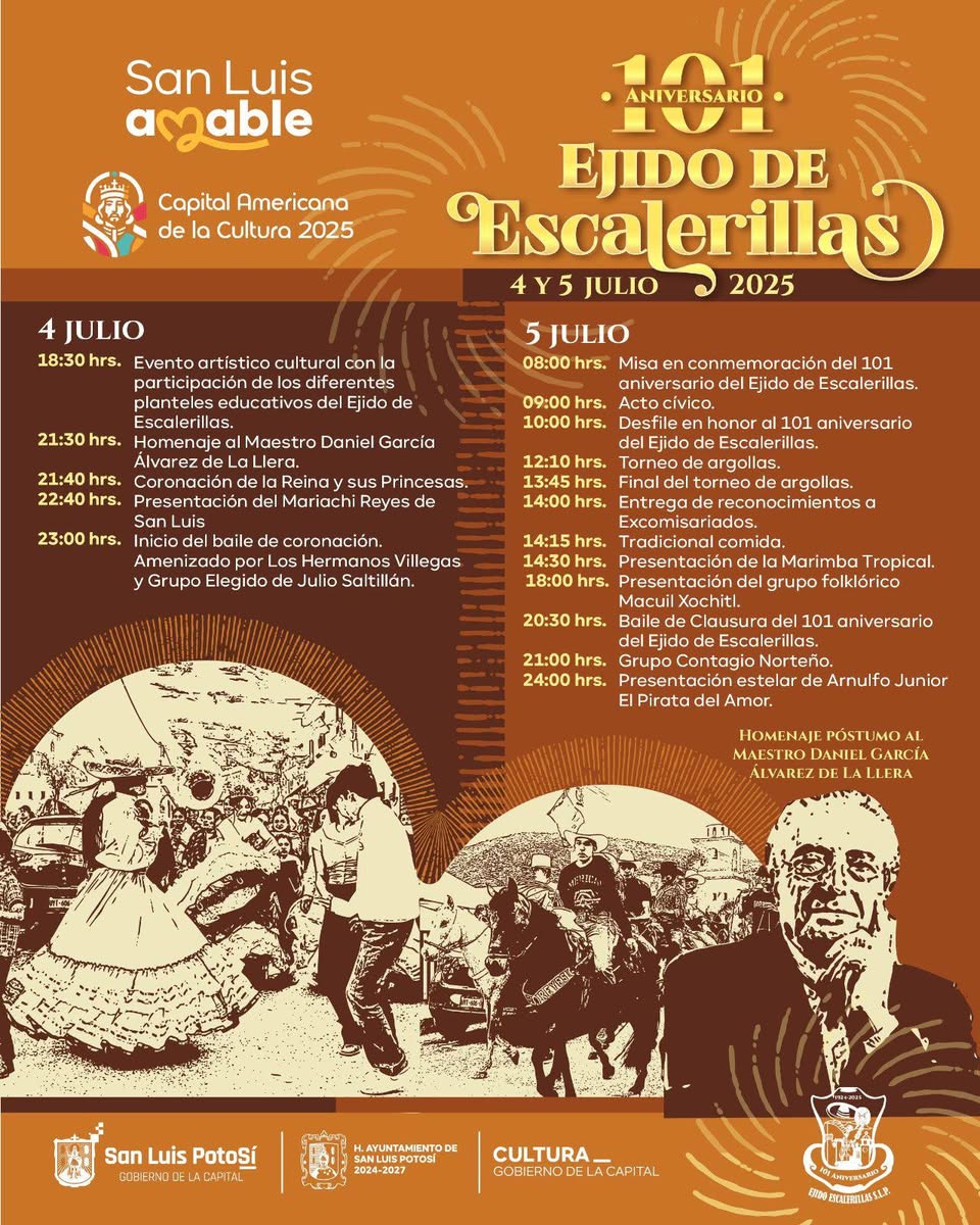 El Gobierno de la Capital invita a las y los potosinos a celebrar el 101 aniversario de Escalerillas, este 4 y 5 de julio.