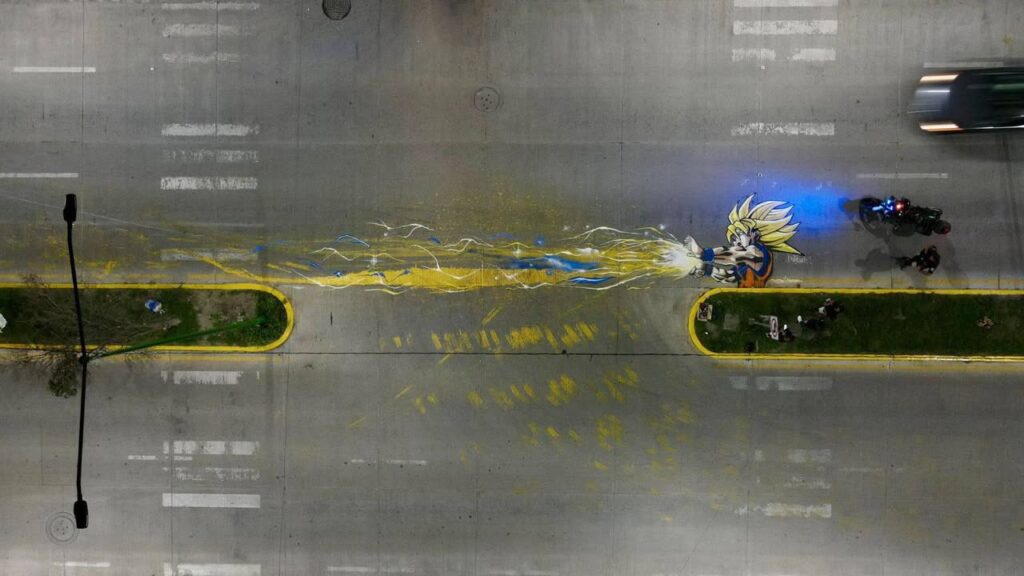 La obra muestra a Gokú lanzando un “kame hame ha” multicolor, como símbolo de energía positiva frente a la destrucción. Este mural no solo embellece el entorno, sino que envía un mensaje de resiliencia, identidad y expresión colectiva.