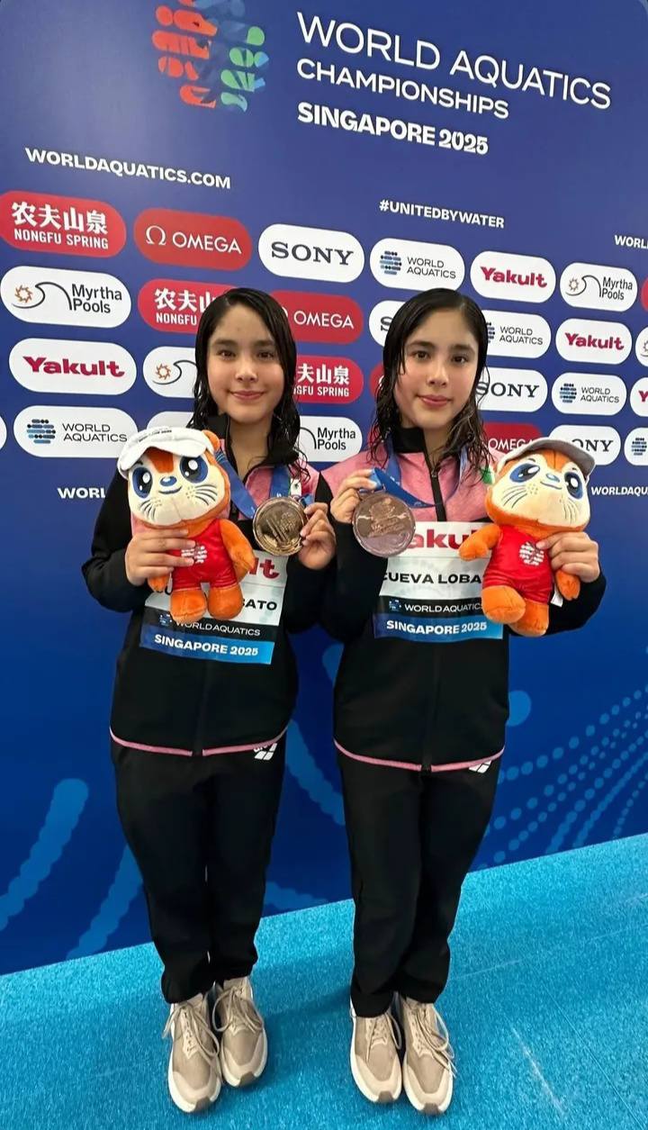 Las hermanas Mía y Lía Cueva, de tan solo 14 años y originarias de Jalisco, brillaron en el Mundial de Clavados 2025 al conquistar la medalla de bronce en trampolín sincronizado de 3 metros, colocándose junto a potencias como China y Gran Bretaña.