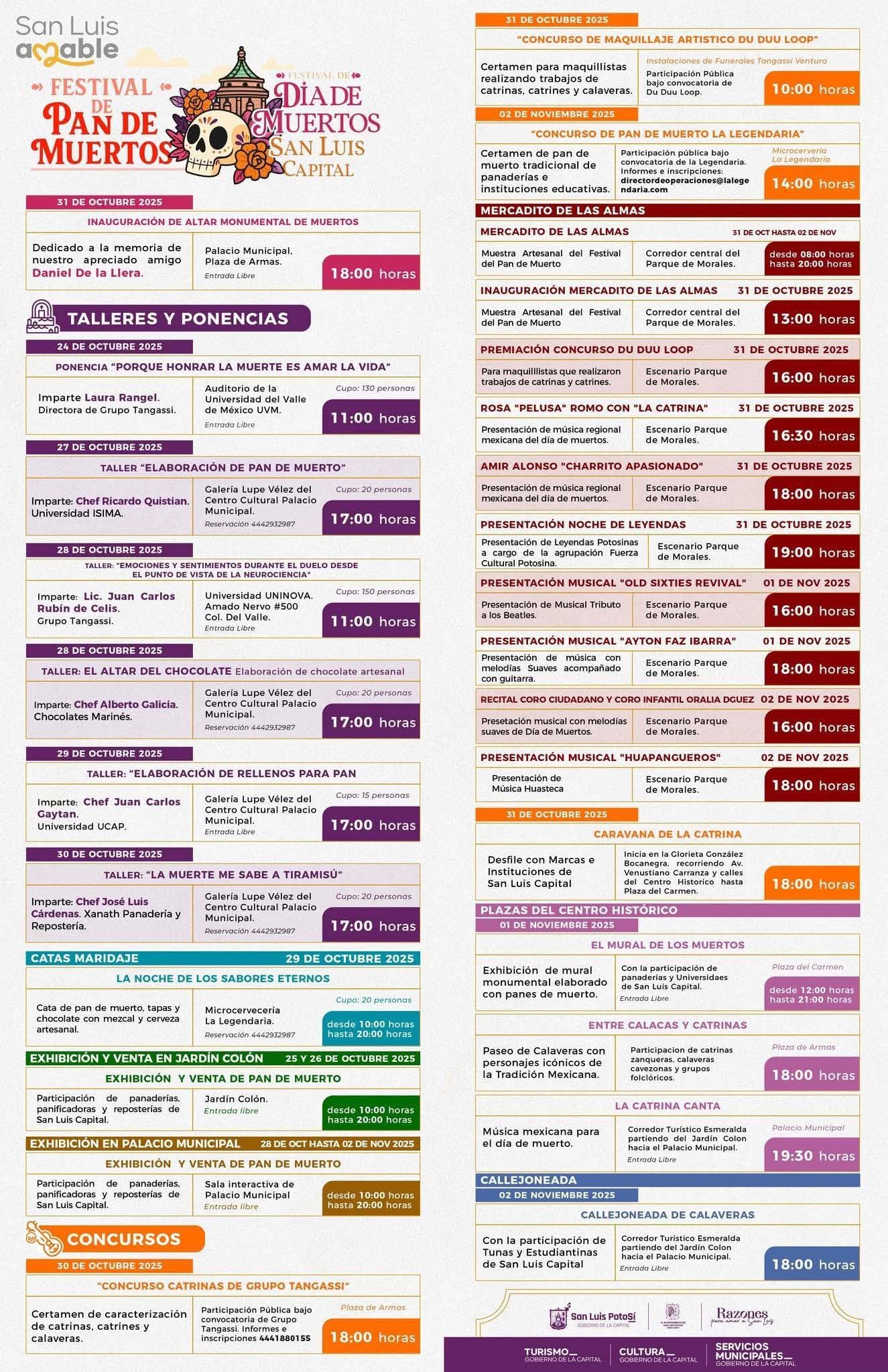 Del 25 de octubre al 2 de noviembre, San Luis Potosí celebrará el Festival de Día de Muertos “Razones para Recordar”, un evento que promete llenar de cultura, música y tradición la ciudad. Durante una semana, los asistentes podrán disfrutar de talleres, exposiciones, desfiles, catas, concursos y presentaciones musicales en diversos espacios del Centro Histórico y recintos culturales de la capital.El festival busca reunir a familias y amigos para honrar la memoria de los seres queridos, celebrar la vida y compartir las raíces culturales de la región, los organizadores invitan a todos los potosinos y visitantes a consultar el programa completo de actividades para aprovechar al máximo esta experiencia única.#ResetMedia #SanLuisAmable #DíaDeMuertosSLP #RazonesParaRecordar #CulturaMunicipalSLP