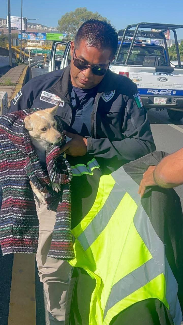 Elementos de la Policía Vial realizaron el rescate de una perrita de talla pequeña que se encontraba en los carriles centrales de la avenida Salvador Nava Martínez, a la altura del puente de avenida Juárez.Gracias a la rápida intervención de los agentes, se evitó un posible accidente y se logró poner a salvo al animal, la perrita fue resguardada y trasladada al Centro Integral de Bienestar Animal para recibir atención veterinaria y garantizar su bienestar.#ResetMedia #RescateAnimal #PolicíaVial #BienestarAnimal #ProtecciónAnimal