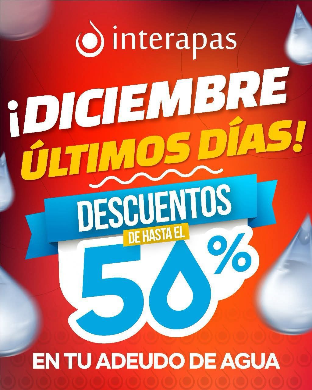 El organismo INTERAPAS recordó que diciembre es el último mes para que usuarios domésticos y comerciales aprovechen los incentivos fiscales del programa “Acaba tu deuda de una vez”, que ofrece descuentos de entre 30 y 50 por ciento en adeudos de agua y drenaje.Este esquema permite a familias, negocios y locatarios regularizar sus cuentas y acceder a apoyos especiales para liquidar pagos atrasados, la campaña busca facilitar que más usuarios se pongan al corriente y, con ello, fortalecer la operación del organismo para continuar mejorando el servicio.Para conocer el descuento aplicable y revisar el saldo actualizado, los usuarios pueden ingresar al portal indicado y capturar los datos de su contrato, los pagos pueden realizarse en línea, mediante InterAPPas Móvil o directamente en las cajas recaudadoras.#ResetMedia #Interapas #AcabaTuDeuda #Descuentos #AguaSLP