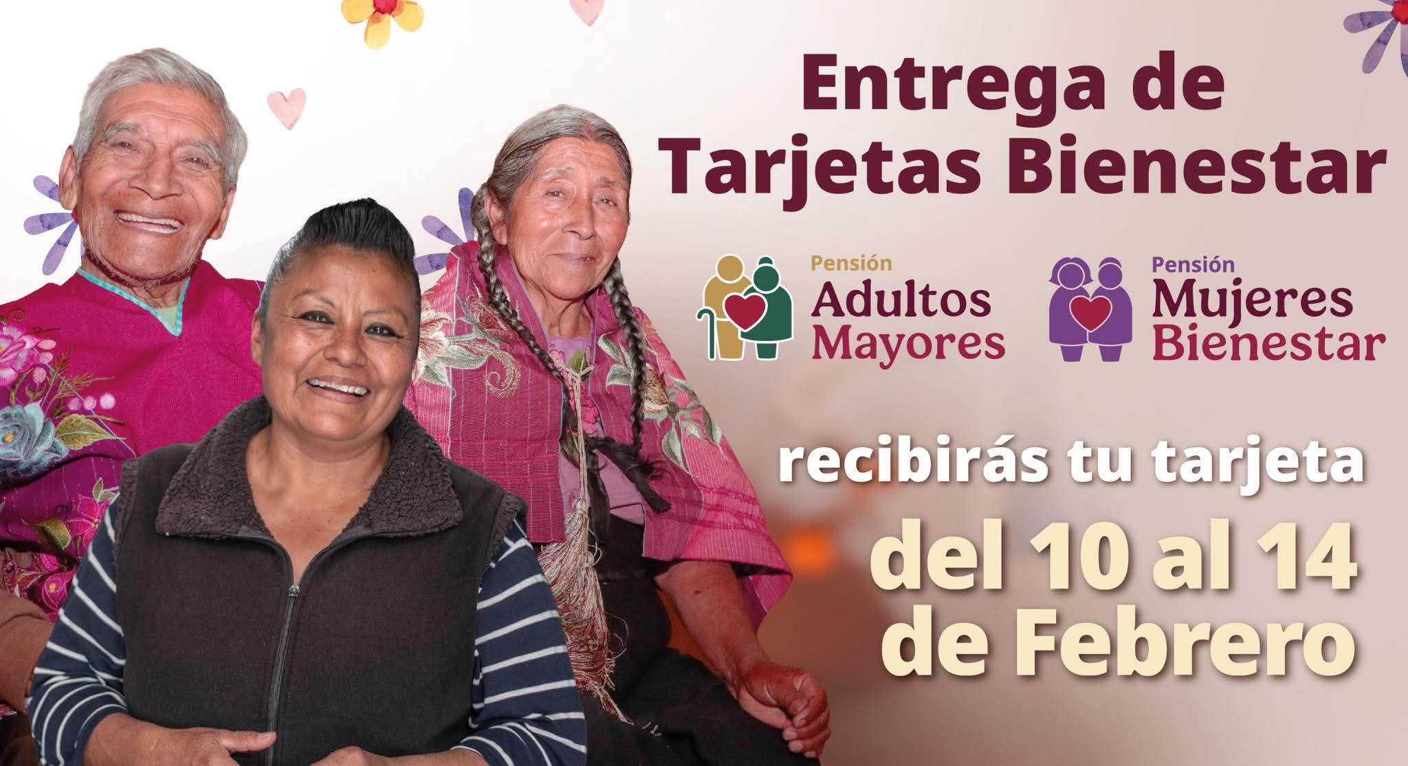 La secretaria de Bienestar, Ariadna Montiel Reyes, informó que, del 10 al 14 de febrero se realiza la entrega de la Tarjeta de Bienestar a quienes se registraron en diciembre a la Pensión Mujeres Bienestar o a la Pensión para el Bienestar de las Personas Adultas Mayores. “Cada dos meses se abre el registro para quienes van cumpliendo 60 años en el caso de las mujeres y 65 años en el caso de los adultos mayores”, abundó. Ariadna Montiel explicó que, para una mejor atención, las personas que se registraron a cualquiera de las dos pensiones, recibirán un mensaje de texto SMS, para informar el día, hora y lugar donde deben acudir para recoger la tarjeta. Asimismo, se puede consultar con la CURP en la página de la Secretaría de Bienestar: www.gob.mx/bienestar #ResetMedia#PensionesBienestar#SecretariaDelBienestar#MujeresBienestar#adultosmayores