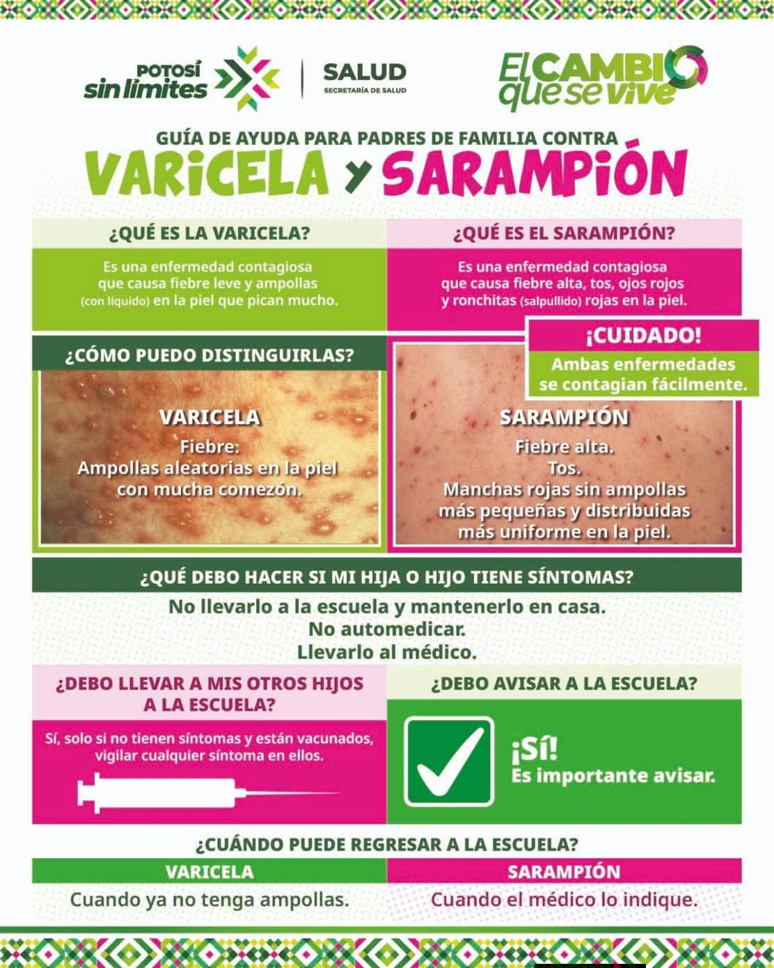 Autoridades de salud informaron que en lo que va del año se han registrado tres casos de sarampión en San Luis Potosí, los cuales están relacionados con contagios provenientes del extranjero.Ante esta situación, se exhorta a madres, padres y tutores a revisar y completar los esquemas de vacunación de niñas y niños, así como de personas entre 10 y 49 años que no tengan certeza de haber recibido la inmunización correspondiente.Especialistas también pidieron estar atentos a los síntomas del sarampión, como fiebre alta, erupciones en la piel, tos, congestión nasal y ojos enrojecidos, ya que puede confundirse con otras enfermedades exantemáticas comunes en la infancia, que también presentan sarpullido y son contagiosas como la varicela.La recomendación es acudir a la unidad de salud más cercana ante cualquier sospecha y mantener al día las vacunas para evitar la propagación de la enfermedad.#ResetMedia #SanLuisPotosí #Sarampión #SaludPública #Vacunación #Prevención