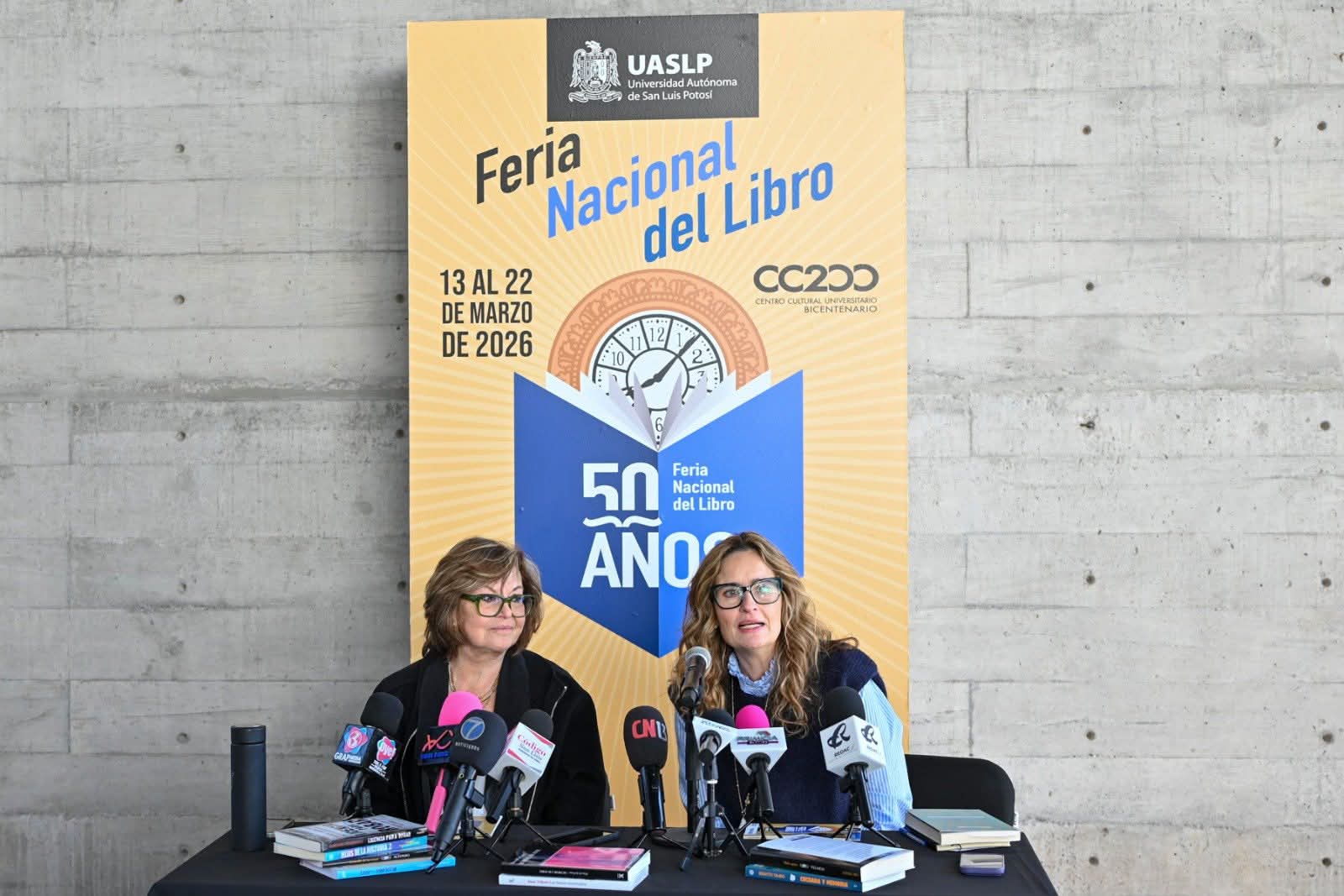 La Universidad Autónoma de San Luis Potosí celebrará 50 ediciones de su Feria Nacional del Libro (FNL), del 13 al 22 de mayo, en el Centro Cultural Universitario Bicentenario, consolidada como una de las diez más importantes del país y como un escaparate literario formador de nuevos lectores, dio a conocer la licenciada Patricia Flores Blavier, directora de Fomento Editorial y Publicaciones.En su intervención, la licenciada Cynthia Valle Meade, secretaria de Difusión Cultural de la UASLP, recordó la trayectoria del evento, desde la estructura geodésica en Plaza de Fundadores hasta su sede actual en el CC200. “Algunos recordarán que empezamos con algunos estantes en Fundadores, después pasamos al Edificio Central y ahora, por segunda ocasión, recibimos la feria en el Centro Cultural Universitario Bicentenario”, indicó.Patricia Flores destacó que, en esta edición conmemorativa, la UASLP otorgará el grado de Doctor Honoris Causa a los escritores Juan Villoro y Cristina Rivera Garza, quienes además presentarán al público sus obras más recientes. La programación completa, que incluye presentaciones de libros, talleres y actividades infantiles, puede consultarse en las redes sociales de la Feria Nacional del Libro UASLP y en el sitio oficial https://feriadelibro.uaslp.mx/.#ResetMedia#UASLP#cultura#literatura#FeriaDelLibroUASLP#FeriaDelLibro#HonorisCausa